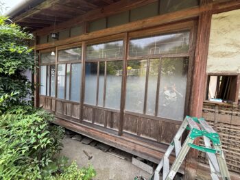 建具が当時の木製建具で隙間風や断熱性がないため部屋や、縁側が寒い。
