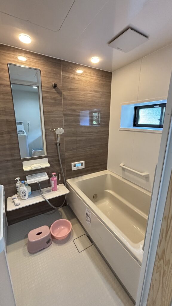 お風呂は木目調のアクセントが入ったユニットバスにし、以前のタイルで冷たい浴室からヒートショックの起きずらい暖かい浴室になりました。